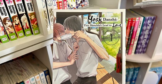 You know… I don’t often get embarrassed buying BL or mature manga but this series really tested me since the blurb on the back had me wanting to hide my face. With a quote that read “Hey, guess what? They say the mouth is a guy’s second hole,” I was ready to go incognito just to bring this up to the check-out table. I did put my embarrassment aside since Mask Danshi: This Shouldn't Lead to Love by Mitsuru Sangou is one of Animate International‘s first foray into publishing physical books. I just couldn’t help but to be curious about the BL series they’re publishing. Is it worth buying or should you skip this?